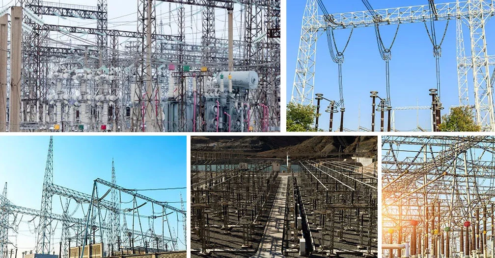 Substasi lan kabel ruangan liyane, peralatan saka struktur dhukungan utama jeneng umum. Ditemtokake miturut level voltase, tata letak, peralatan, konstruksi lan kahanan operasi lan kahanan iklim lokal. Miturut sifat listrik, tingkat voltase sing beda mbutuhake jarak tartamtu ing antarane kabel, kabel ing lemah lan kabel kanggo struktur kasebut. Mula, struktur substasi ditondoi kanthi kolom lan bagean cilik, kalebu struktur keluwesan gedhe. Ing babagan jinis klasifikasi tata letak teknologi, ana tata letak medium, setengah dhuwur tata letak lan tata letak dhuwur. Tata letak semi-dhuwur lan dhuwur biasane digunakake ing substasi kanthi tingkat voltase sing dhuwur.